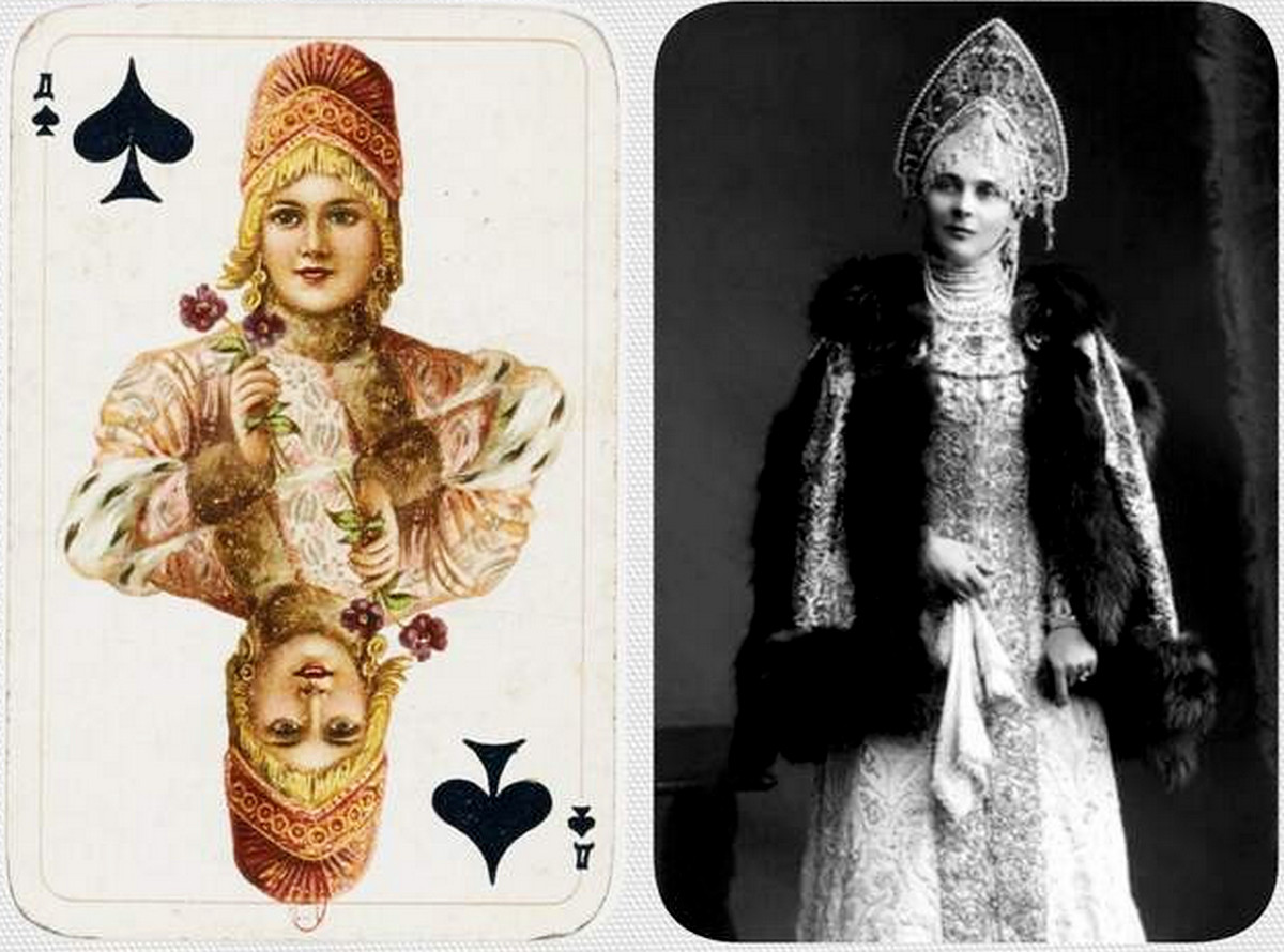 На основе дворцовой съемки вышел альбом - 21 гелиогравюра и 174 фототипии. А через 10 лет, к 300-летию Дома Романовых в 1913 году, появились игральные карты «Русский стиль». Королем червей в костюме государя всея Руси Алексея Михайловича (отца Петра I) предстал Николай II. Его сестра Ксения в костюме боярыни стала червовой дамой, а тетя царя Елизавета Федоровна (святая Елисавета с 1992 года) - трефовой. Графиню Зинаиду Юсупову (мать убийцы Распутина) изобразили дамой пик. А моделями для валетов послужили молодые Романовы и их адъютанты. Только пиковый король в костюме Ивана Грозного не имел прототипа из числа участников бала, а был срисован с картины «Иван Грозный показывает сокровища английскому послу Горсею».