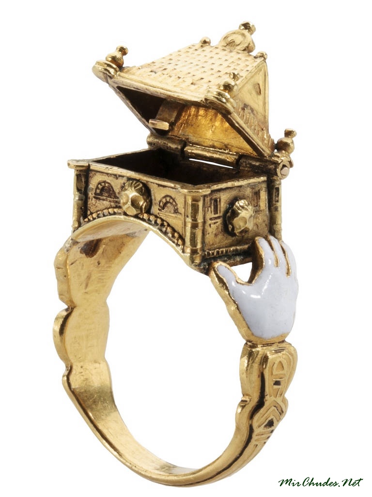 Долгое время кольца были гладкими, без украшений: считалось, что это сделает гладкой и семейную жизнь. Таково, например, найденное в Нюрнберге серебряное кольцо XIII века -его украшает только надпись внутри: «Во мне верность». Но уже в эпоху Возрождения кольца стали украшать эмалью, портретами новобрачных и драгоценными камнями. Алый рубин символизировал любовь, синий сапфир - благочестие, алмаз - постоянство и прочность отношений. Первым кольцо с бриллиантами вручил своей избраннице Марии Бургундской австрийский эрцгерцог Максимилиан в 1477 году. Тогда же утвердилось мнение, что кольцо должно быть золотым, для прочности брака. Недаром ирландская пословица гласит: «То, что не из золота, не принесет счастья».