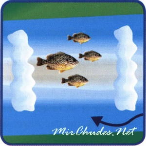 Это место - отличное укрытие как для маленьких, так и для крупных солнечных окуней. Стоит использовать приманки, защищенные от зацепов, спиннербейт и другие джиги с защищенным крючком.